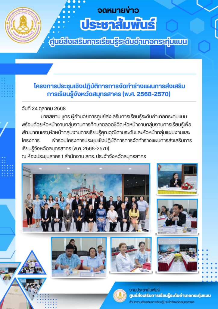โครงการประชุมเชิงปฏิบัติการการจัดทำร่างแผนการส่งเสริมการเรียนรู้จังหวัดสมุทรสาคร (พ.ศ. 2568-2570)