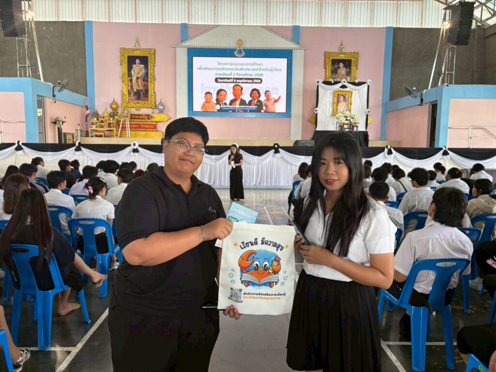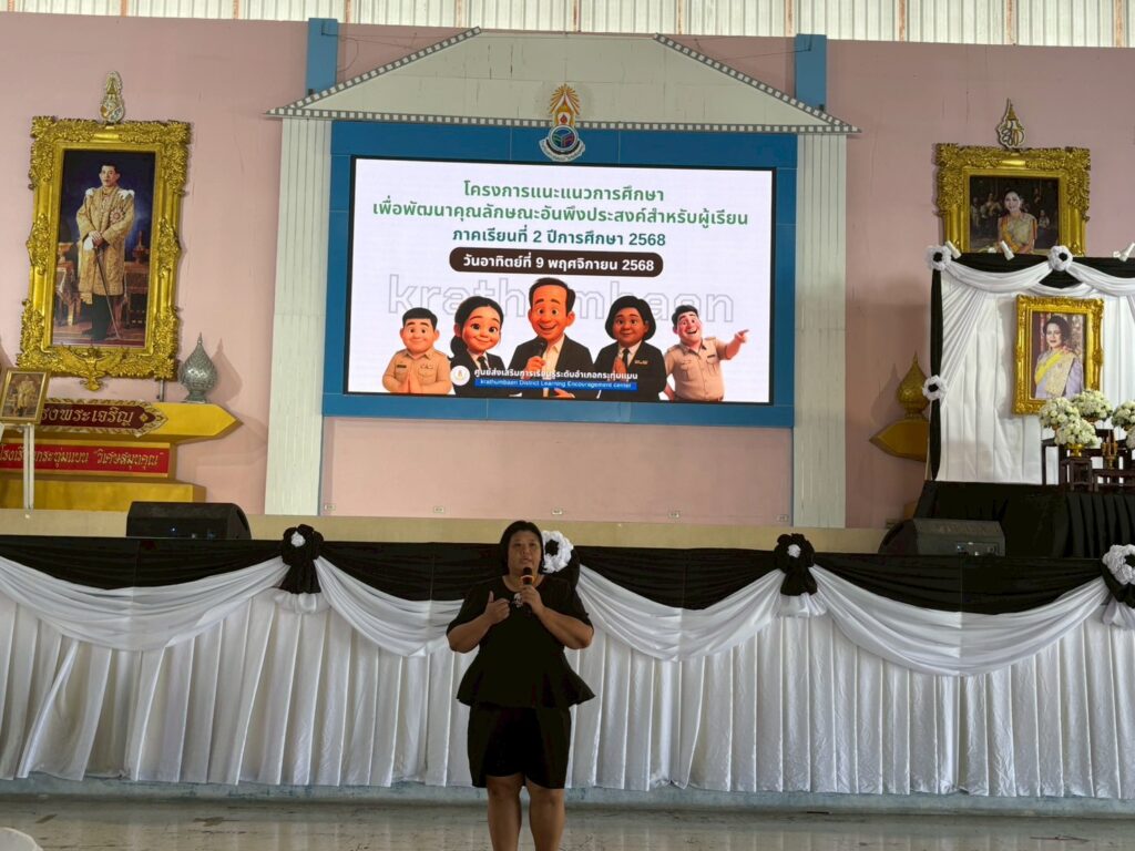 วันที่ 9 พฤศจิกายน 2568 ศูนย์ส่งเสริมการเรียนรู้ระดับอำเภอกระทุ่มแบน ดำเนินการจัดโครงการแนะแนวการศึกษาและพัฒนาคุณลักษณะอันพึงประสงค์สำหรับผู้เรียน ภาคเรียนที่ 2/2568 โดยมีนายสยาม ชูกร เป็นประธานในพิธี รับฟังการบรรยายเรื่อง หลักสูตรกระบวนการการจัดการเรียนรู้ , กิจกรรมพัฒนาคุณภาพชีวิต กพช. , การใช้บริการห้องสมุดและแนะนำห้องสมุดประชาชน“เฉลิมราชกุมารี”อำเภอกระทุ่มแบน แนะนำ แอพพลิเคชั่น LINE OFFICIAL น้องปูก้ามดาปและแนะแนวการศึกษาจากมหาวิทยาลัยสุโขทัยธรรมาธิราช ณ โรงเรียนกระทุ่มแบน “วิเศษสมุทคุณ
